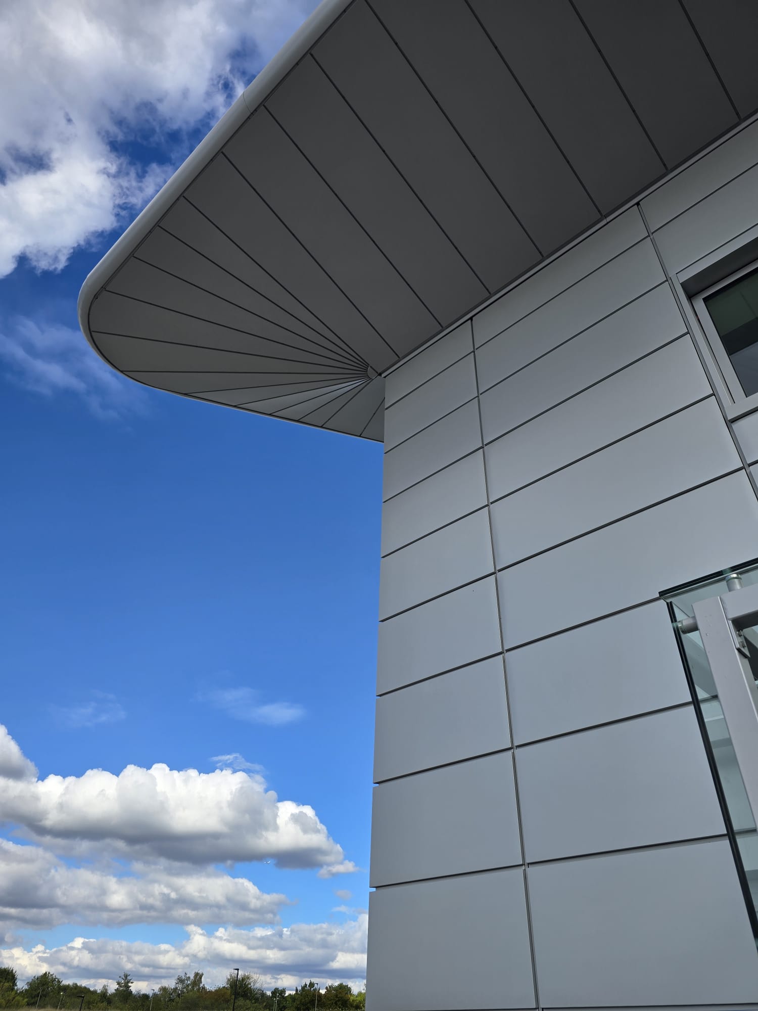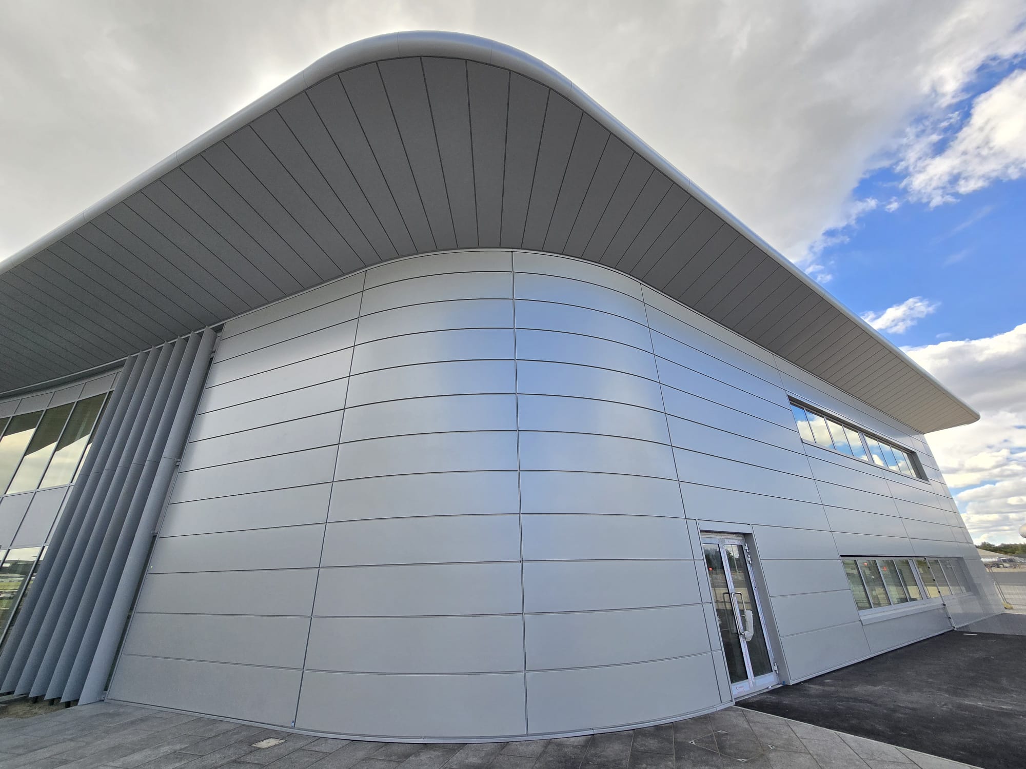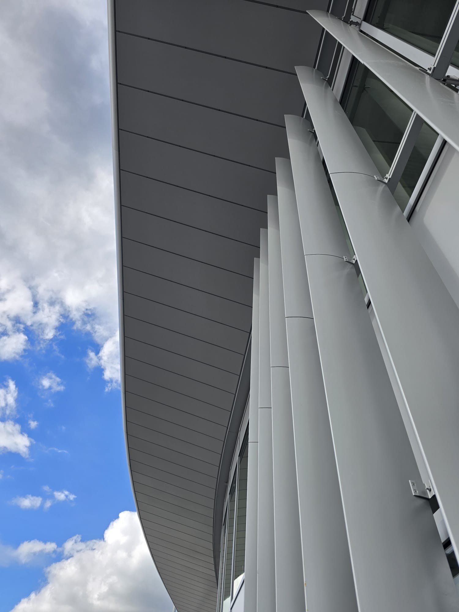 Our team produced each section to tight tolerances, ensuring the curved fascia aligned seamlessly with the soffits and surrounding structure. The final result delivers a smooth, continuous architectural flow that emphasises the visual impact of the airports exterior.