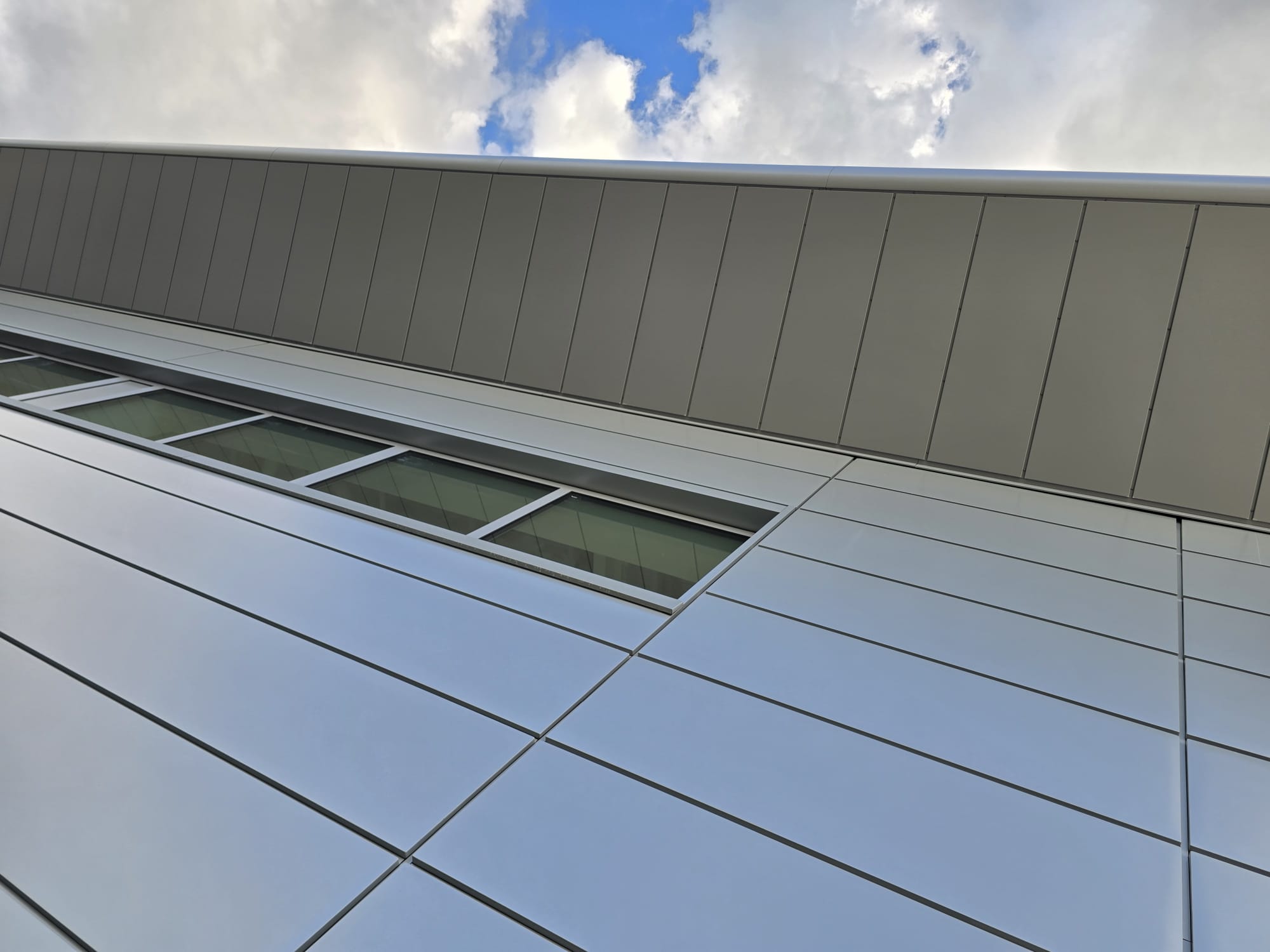 Our involvement centered around the fabrication of metallic silver soffits, bullnose fascias, and architectural flashings, all designed to complement the building’s clean, contemporary and sleek aesthetic.