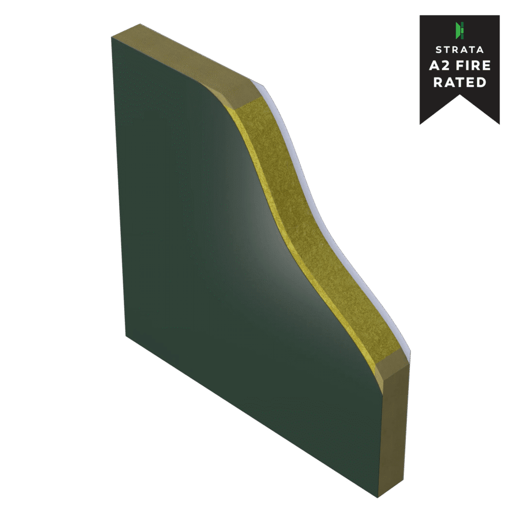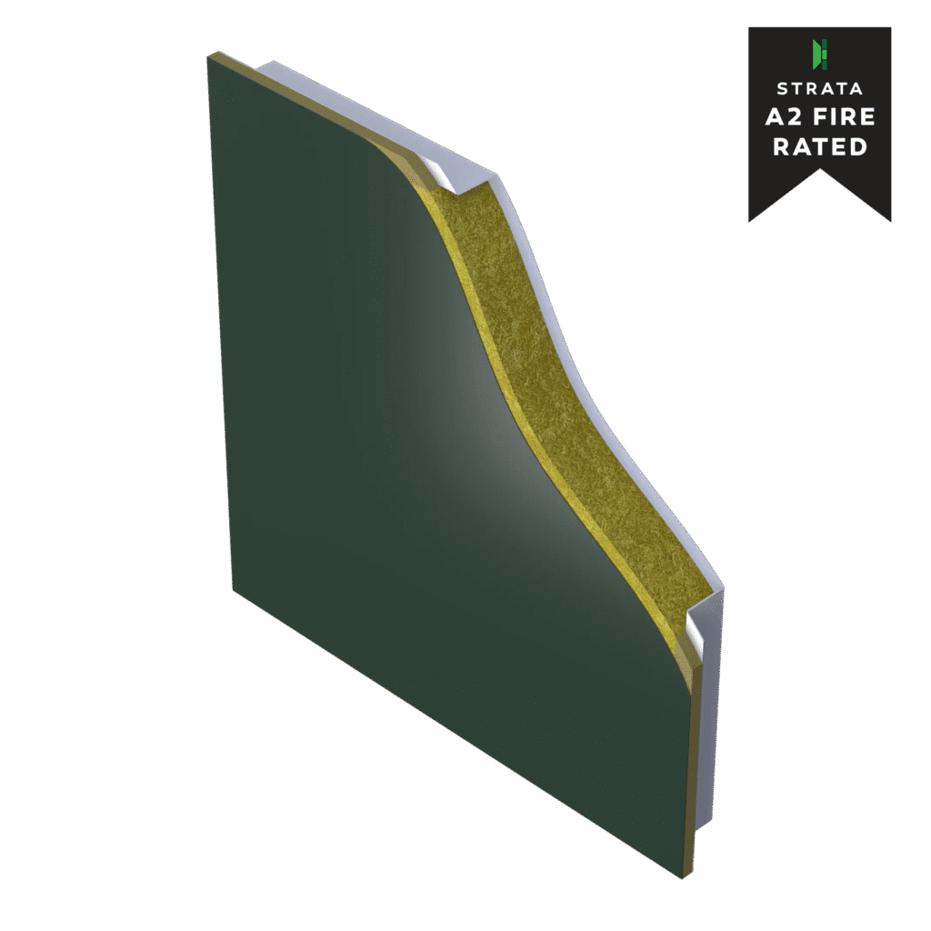 Our Strata 3 insulation spandrel panel comprises of a flat outer skin, a FABROCK insulated core, and a tray inner skin. The Strata 3 design allows for thicker insulation that benefits builds that require higher thermal and acoustic insulation.